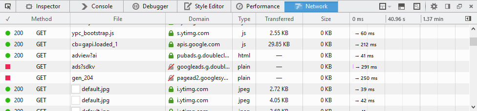 Open the Developer toolbar in the Firefox browser. Choose the Network tab and open the website which contains ads: